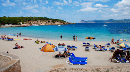 La playa de s'Aigua Blanca o Aigües Blanques (Aguas Blancas) es un arenal amplio con vistas espectaculares y zonas nudistas a sus extremos. Su nombre viene del color que provocan las olas al romper en la costa. ...